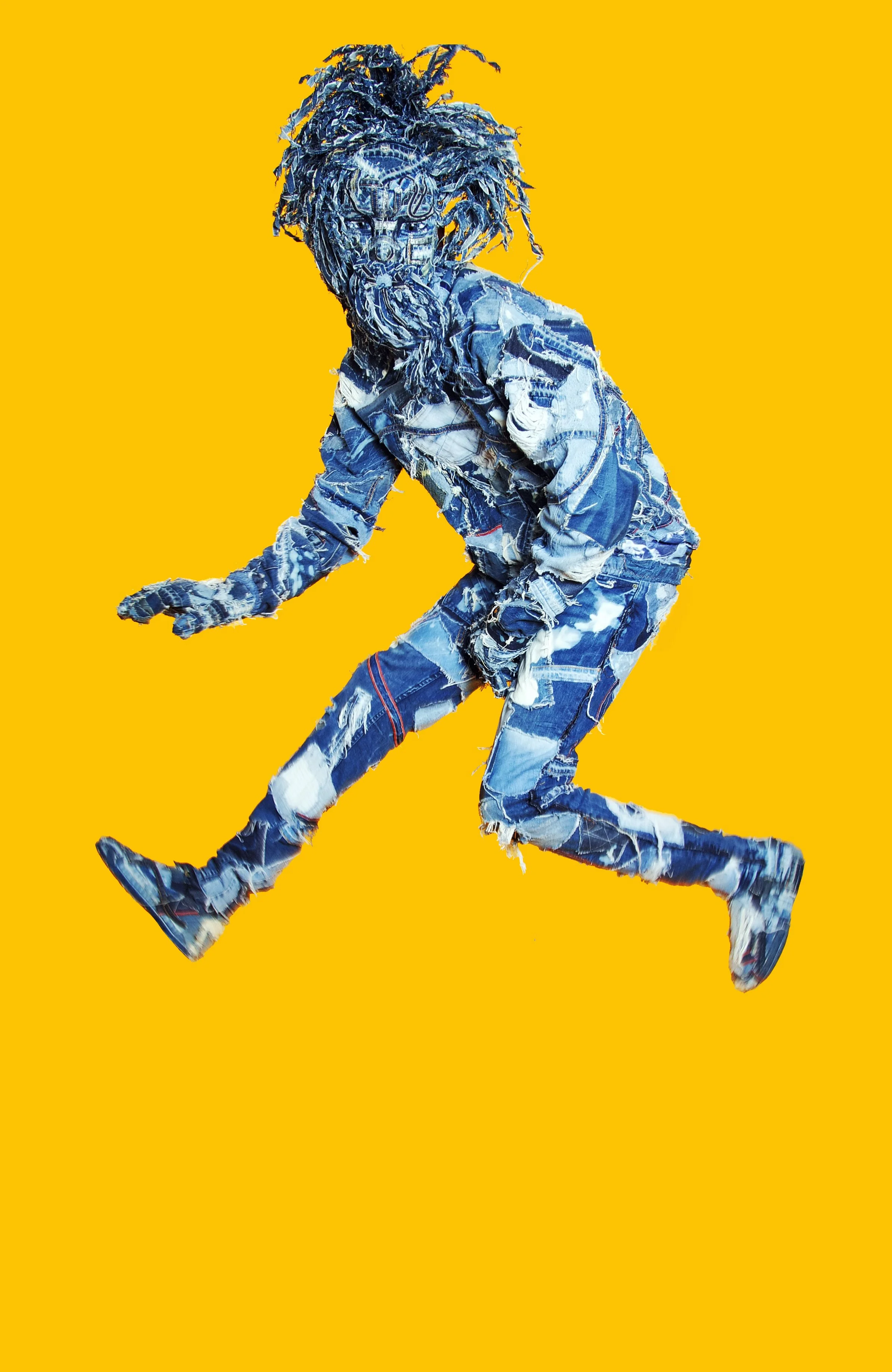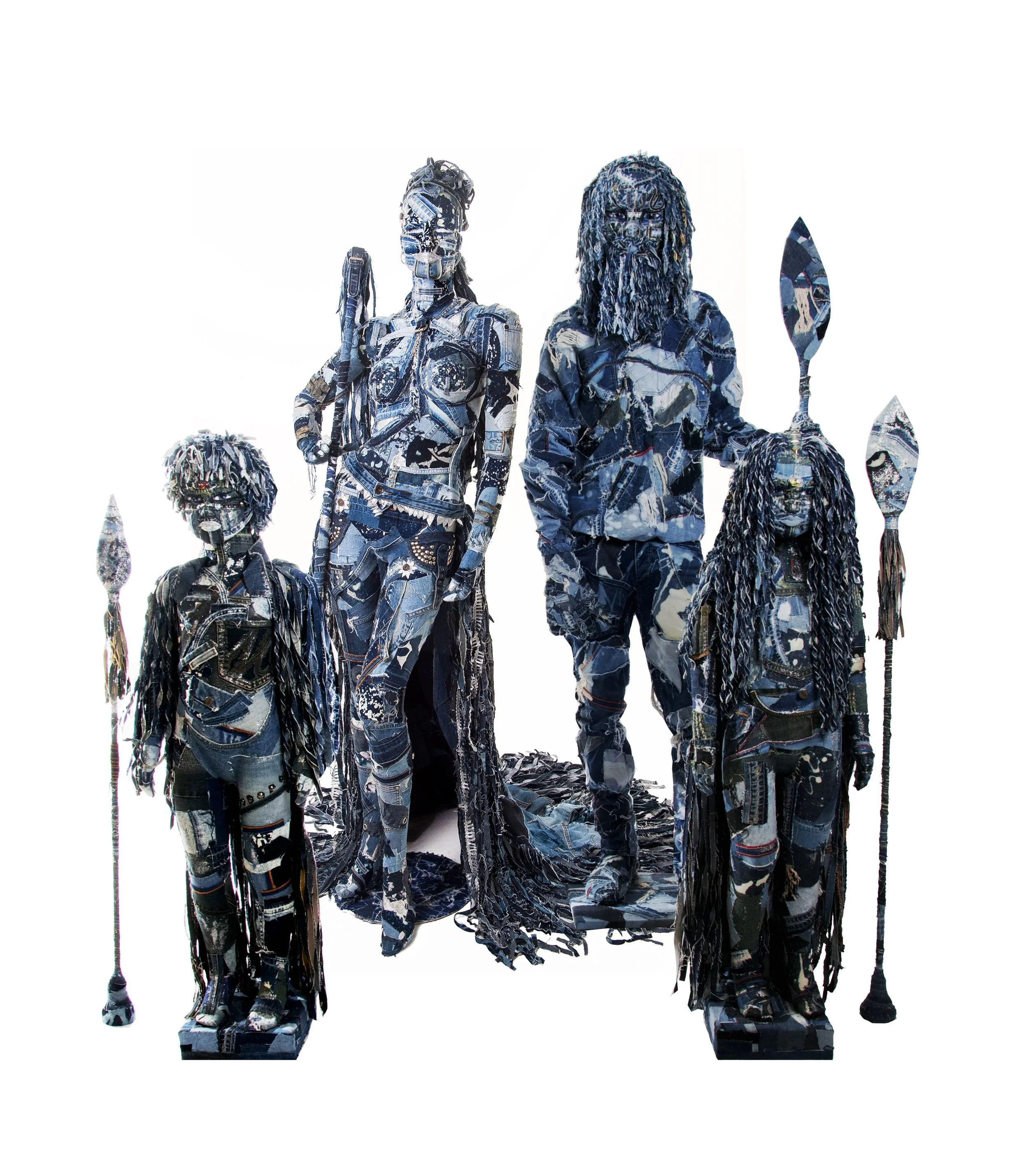 Fibreglass, recycled denim and mixed embellishments