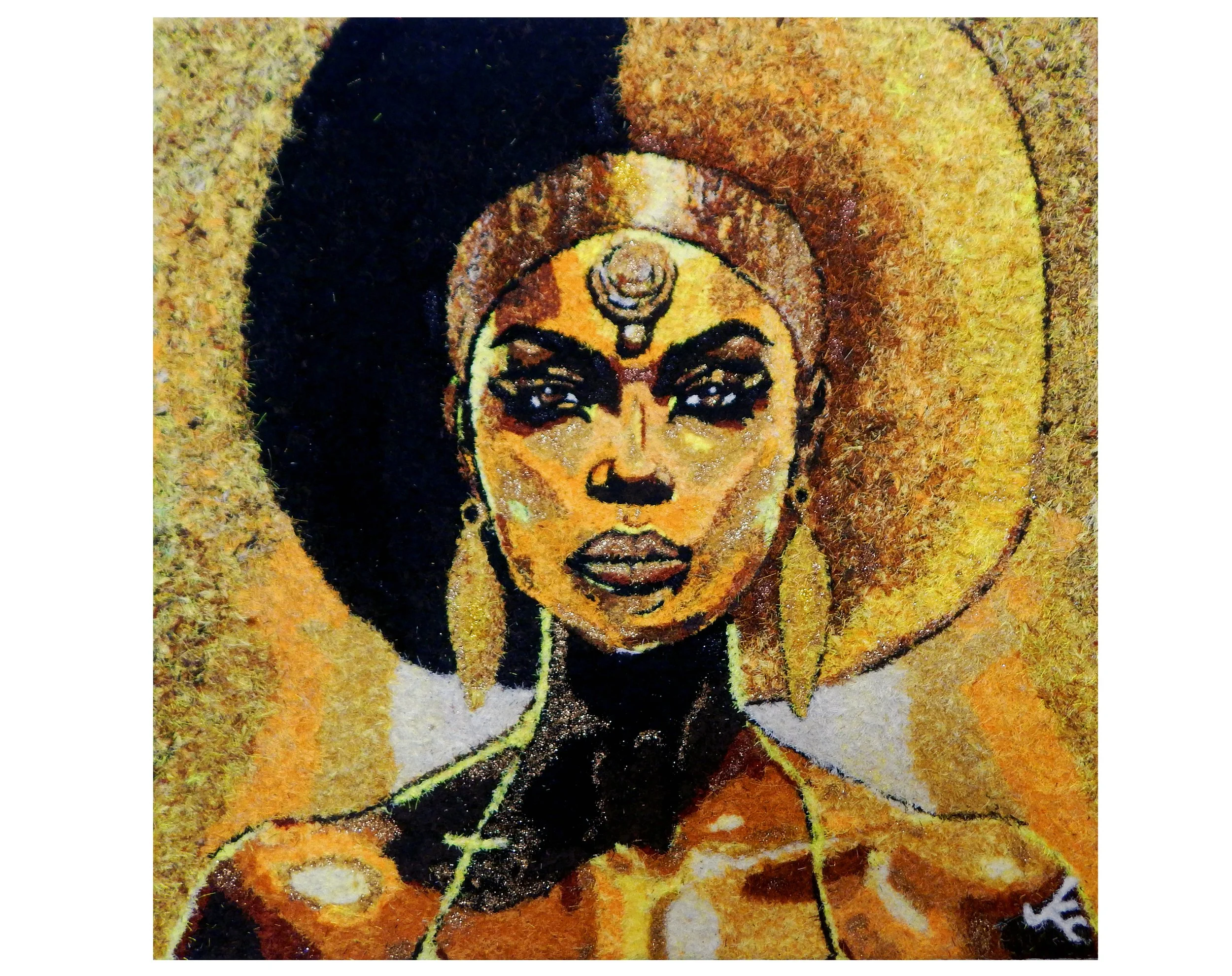 The Chakra Series is a seven-piece abstract fibre body exploring energetic alignment through colour, structure and layered form. Each 30 x 30 inch work reflects an individual energy centre and is rendered in the guise of a Black woman asserting feminine power and spiritual embodiment within a contemporary abstract framework.