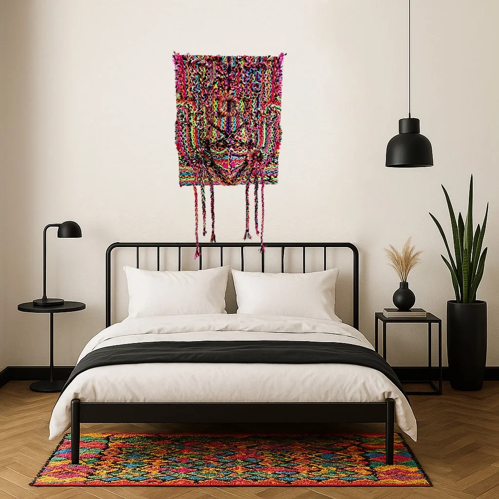 GODDESS ENERGYIt’s my depiction of the feminine creative energy, so vibrant, so fluid.Year: 2023Size: 55.88 x 45.72cmMedium: Synthetic Wool, Card on CanvasTechnique: Braided Wool/Bonding Enquiry