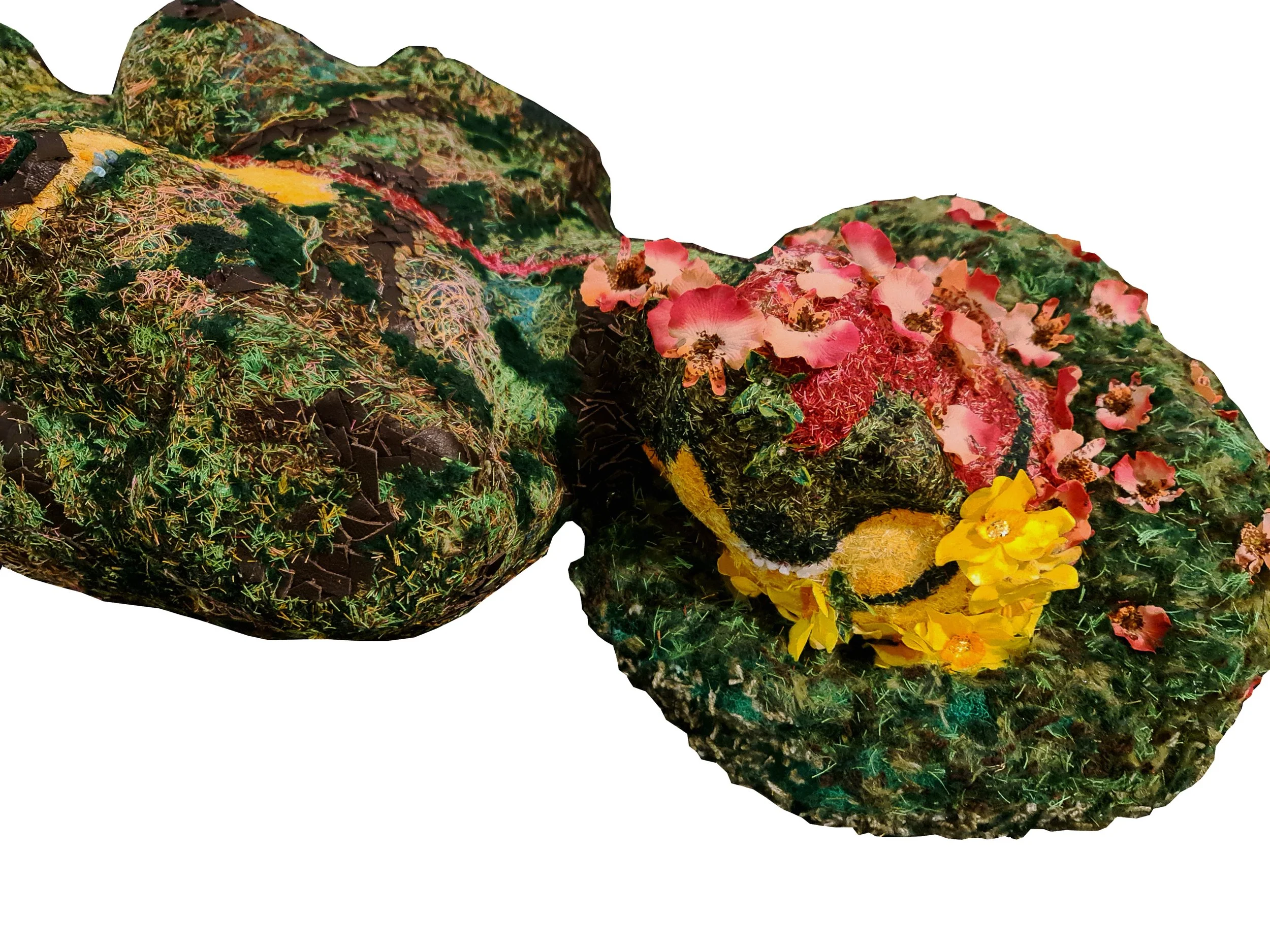 Unlike her upright figures, this mannequin lies on her back a posture of surrender, introspection and quiet strength. Growth is not always visible. It often occurs beneath the surface, in stillness.
